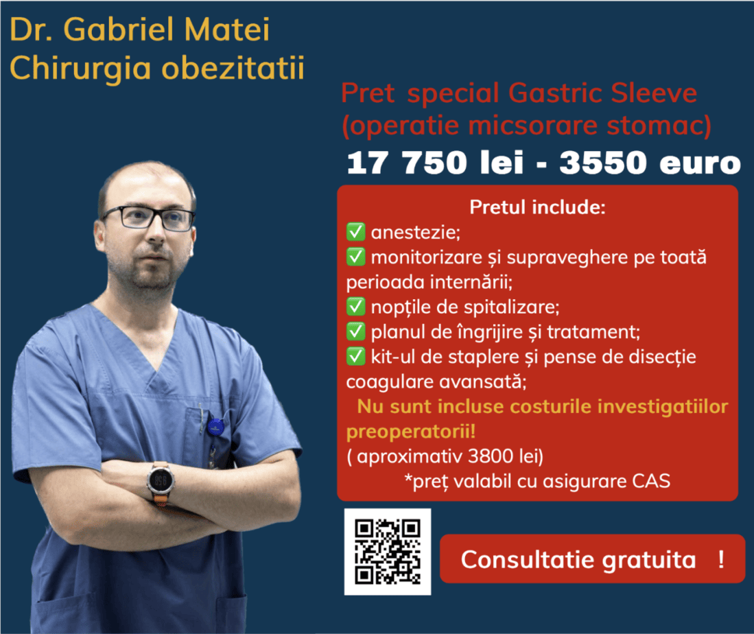 Dr.Gabriel Matei, medic primar chirurgie generală, supraspecializare în chirurgia obezității a vorbit în emisiunea Mirelei Vescan despre perioada preoperatorie dar şi postoperatorie în cazul pacienţilor bariatrici care suferă intervenţii de micşorare a stomacului.