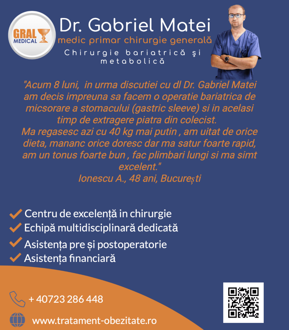 Gastrectomia longitudinala (operatia micsorare stomac, gastric sleeve) este o intervenție chirurgicală restrictiva, care se realizeaza pe cale laparoscopica. In timpul …
